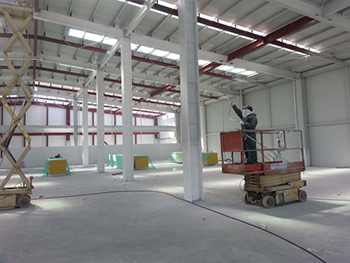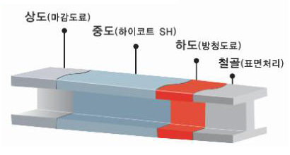 건축물의 철골구조에 적용하여 화재발생시에 고열로부터 건축물을 보호하는 기능을 하는 도료입니다.